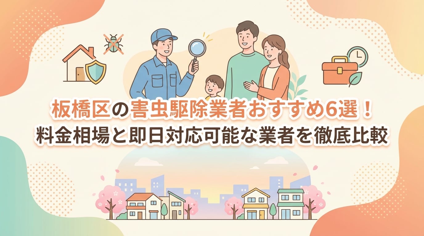 本記事では、板橋区で実績のある害虫駆除業者6社を厳選し、料金相場や口コミ、保証内容を徹底比較します。即日対応可能な業者や、2025年最新のトコジラミ駆除情報、さらには悪徳業者を見分ける方法まで詳しく解説します。この記事を読めば、あなたに最適な業者が見つかり、安心して害虫駆除を依頼できるようになります。