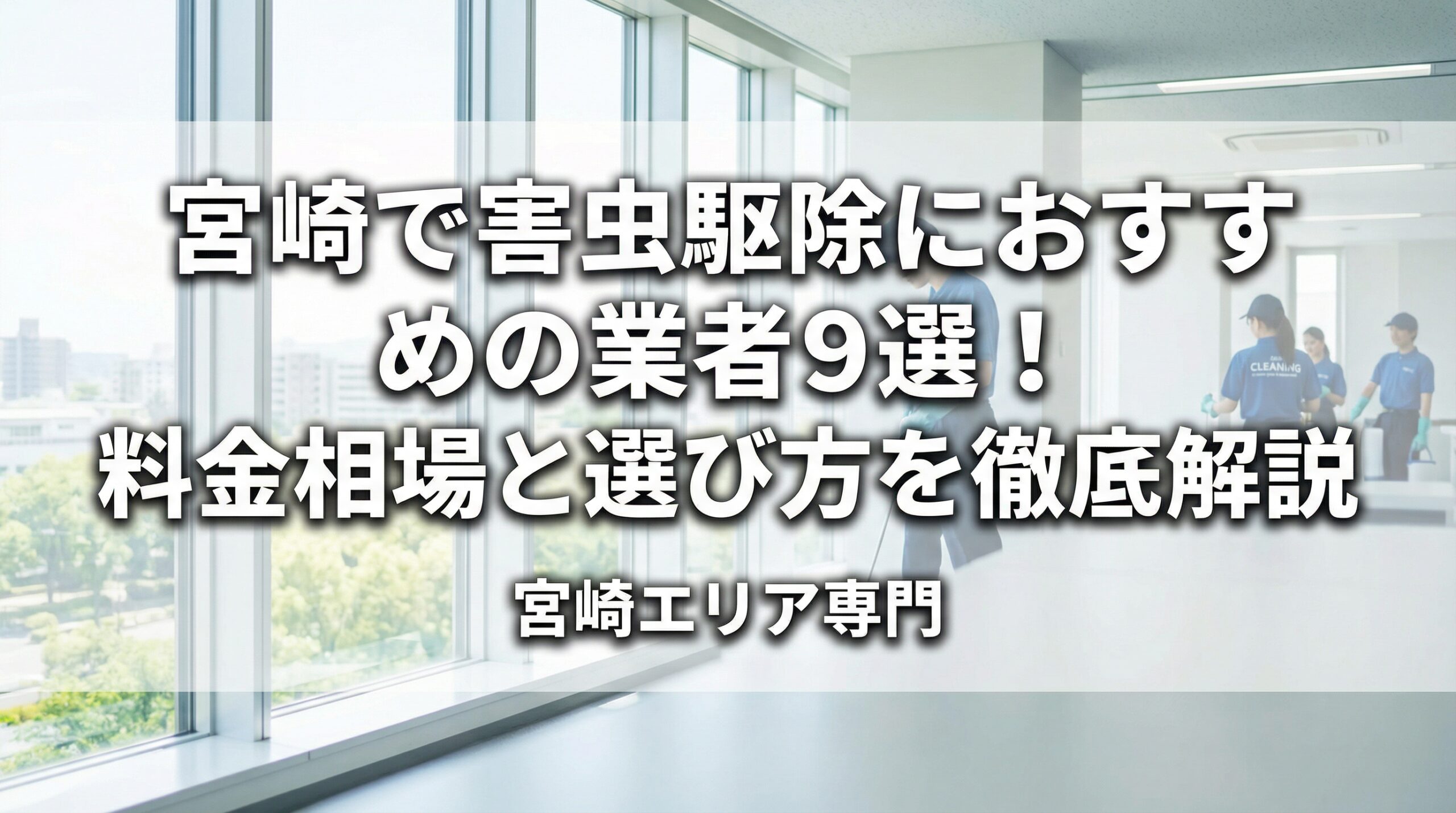 宮崎県内で信頼できる害虫駆除業者を9社厳選しました。それぞれの業者の特徴、料金、対応エリア、保証内容を詳しく解説します。