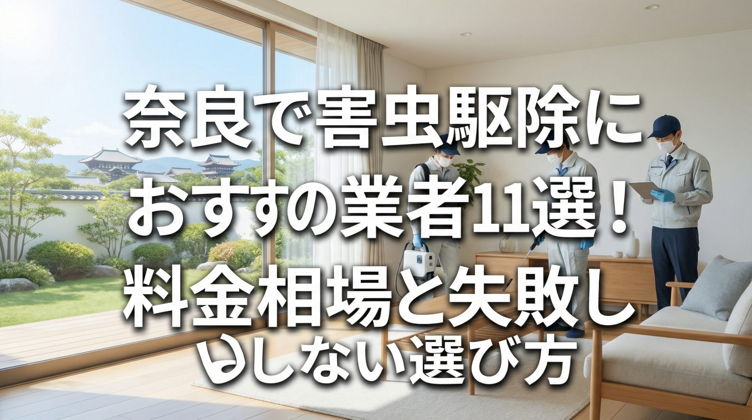 本記事では、奈良県で実績のある害虫駆除業者11社を徹底比較し、料金相場や失敗しない業者選びのポイントを詳しく解説します。即日対応可能な業者や女性スタッフ対応の業者、長期保証のある業者など、あなたのニーズに合った業者選びをサポートします。